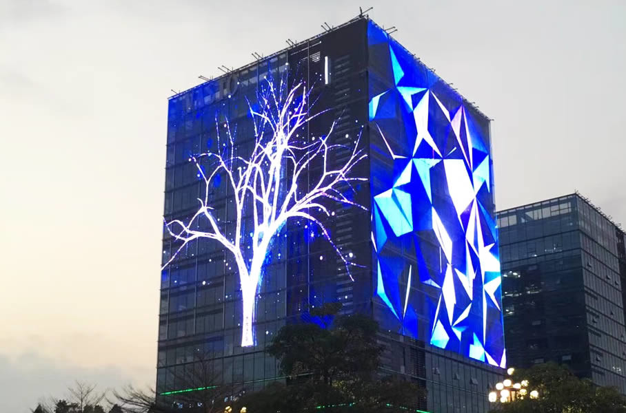 با اثر شفاف بالا و نشان دادن در HD زنده و اثر هولوگرافیک و همچنین عملکرد تعاملی هوشمند،استفاده از دیوار پرده شیشه ای ساختمانی بزرگ که در ترکیب اثر نمایش هماهنگ و نوآورانه بدون تغییر ساختار ساختمان به دست می آید.